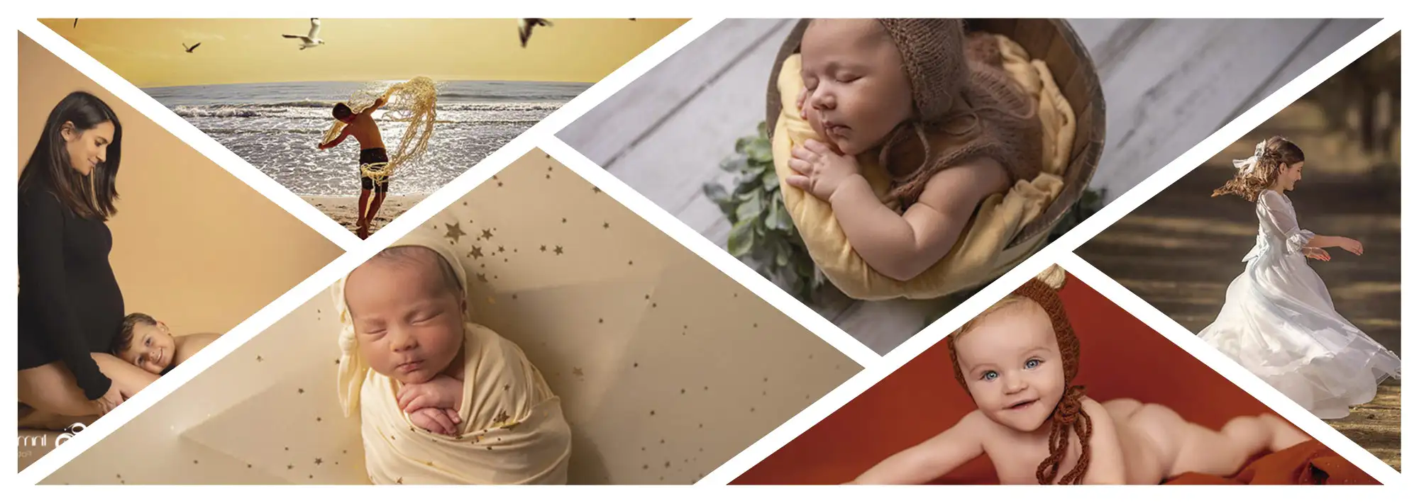 Realizo sesiones de fotografía de embarazo, recién nacido, bebé, infantil y familiar, tanto en estudio como en exteriores.